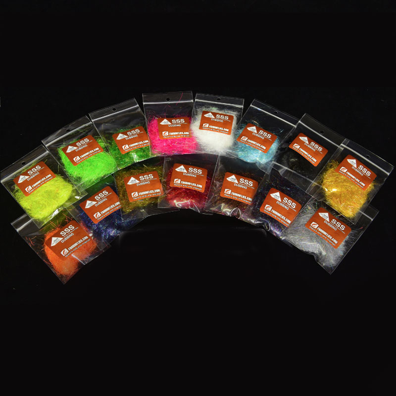 Структура даббинга SSS состоит из прозрачных синтетических волокон, окрашенных и смешанных с пряжей SSS Angel Hair. Пряди Angel Hair обрезаны достаточно длинно, чтобы их можно было расчесывать, не опасаясь, что они выпадут из тела мушки.